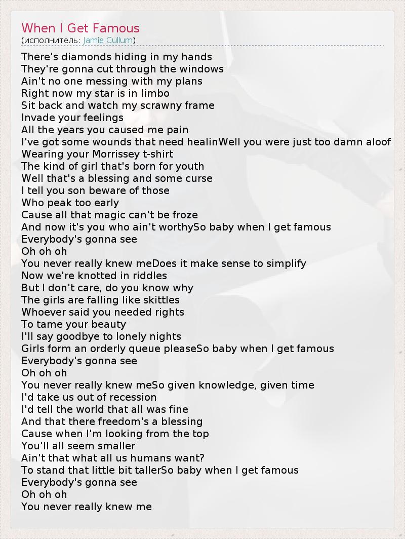 А как ты думаешь, о чем песня "When I Get Famous" ?