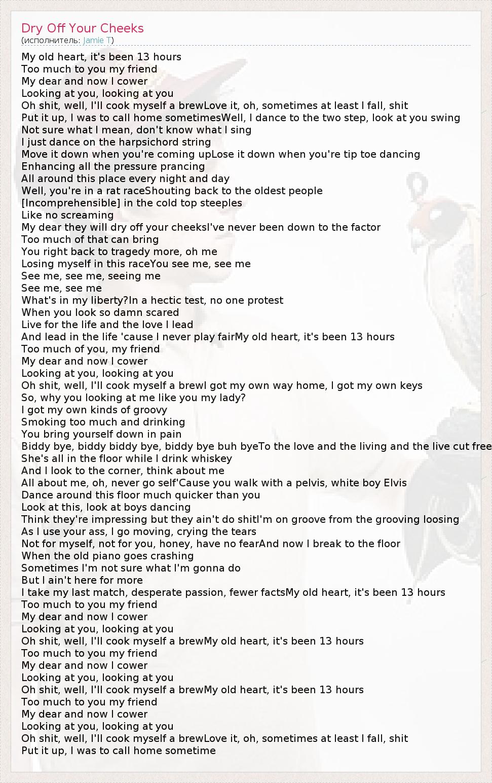 А как ты думаешь, о чем песня "Dry Off Your Cheeks" ?