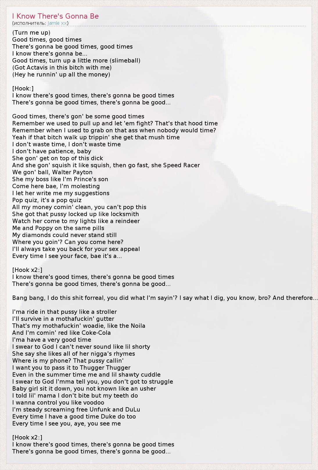 А как ты думаешь, о чем песня "I Know There's Gonna Be" ?