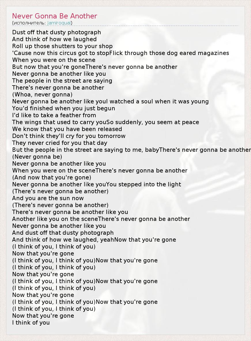 А как ты думаешь, о чем песня "Never Gonna Be Another" ?