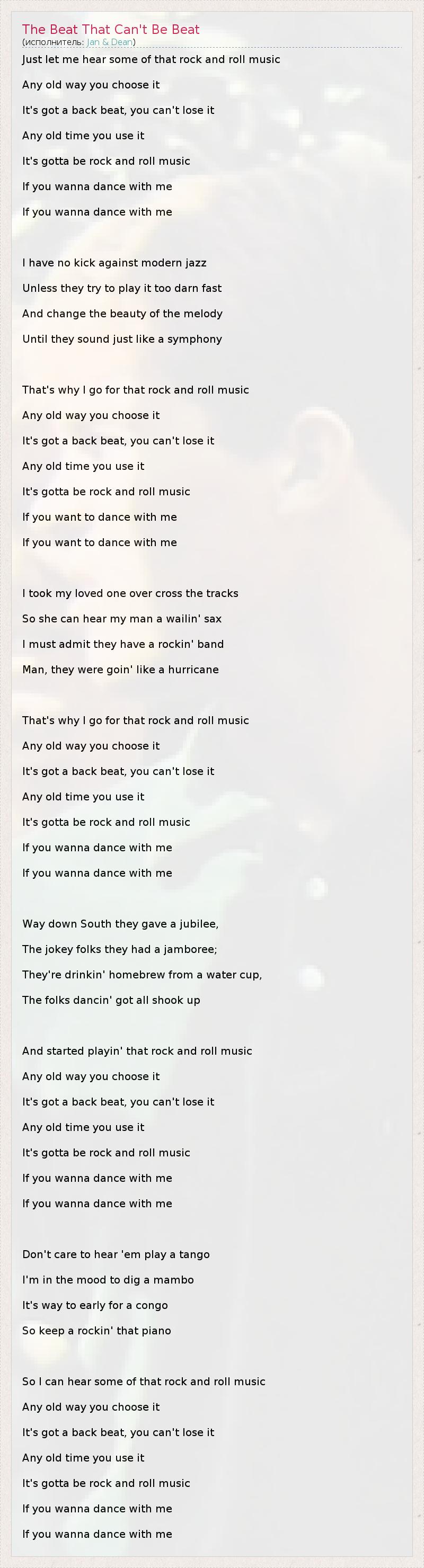 А как ты думаешь, о чем песня "The Beat That Can't Be Beat" ?