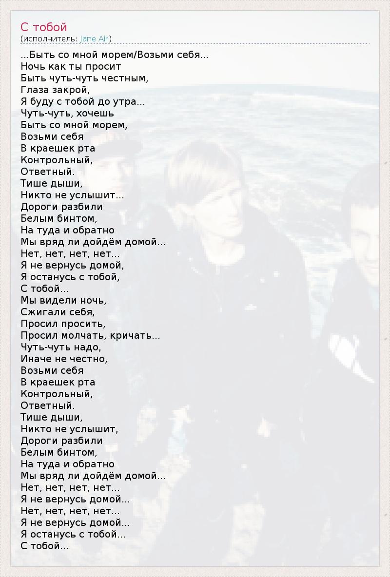Jane Air - С тобой - Текст песни, слушать онлайн Jane Air - С тобой - Текст песни, слушать онлайн