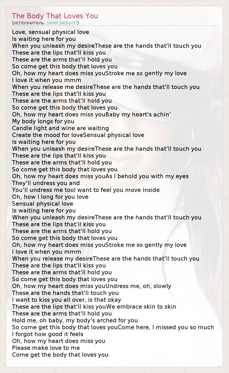 А как ты думаешь, о чем песня "The Body That Loves You" ?