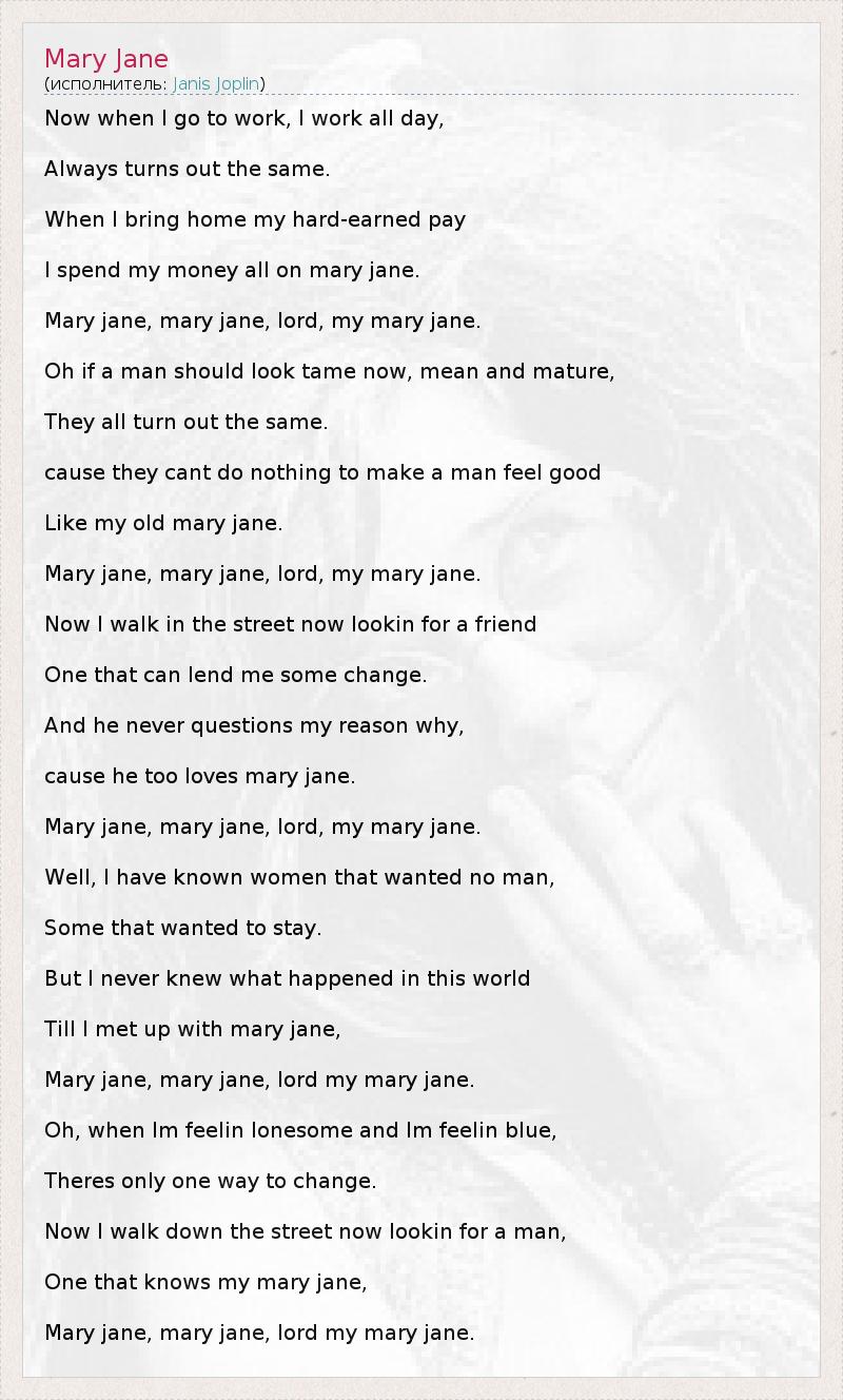 А как ты думаешь, о чем песня "Mary Jane" ?