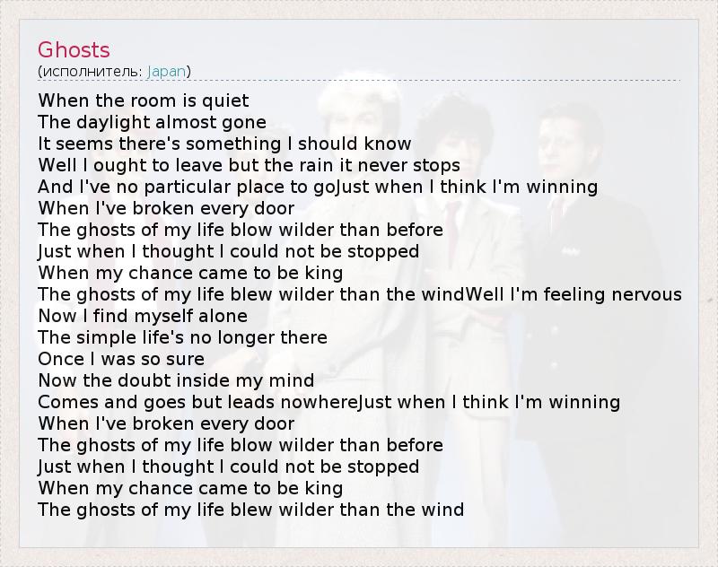 The ghosts of my life blew wilder than the windWell I'm feeling nervous
