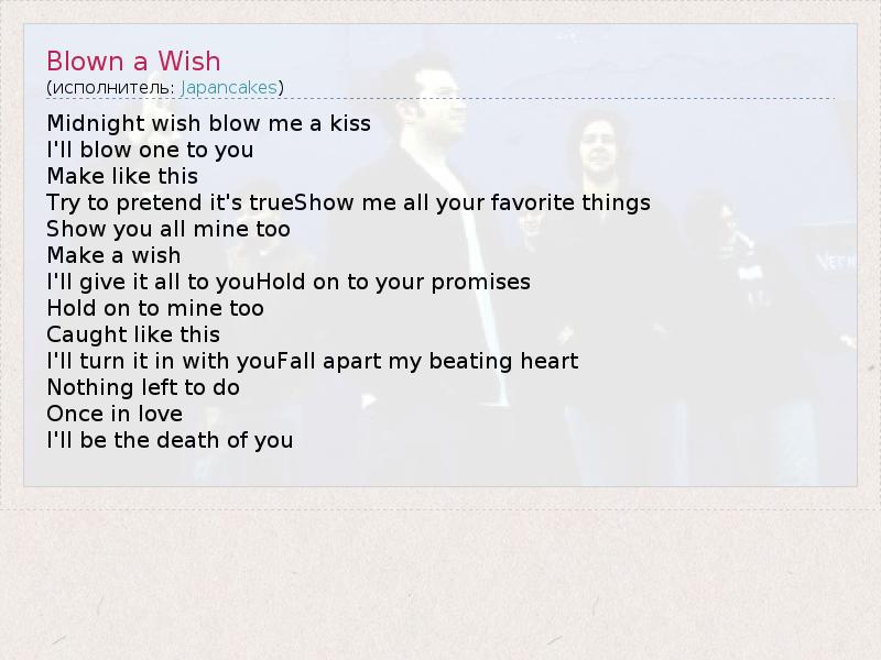 А как ты думаешь, о чем песня "Blown a Wish" ?