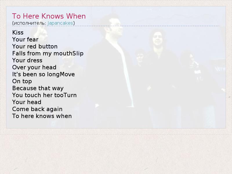 А как ты думаешь, о чем песня "To Here Knows When" ?