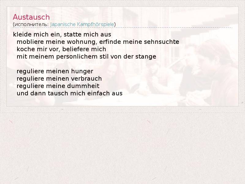 kleide mich ein, statte mich aus mobliere meine wohnung, erfinde meine sehnsuchte koche mir vor, beliefere mich mit meinem personlichem stil von der stange reguliere meinen hunger reguliere meinen verbrauch reguliere meine dummheit und dann tausch mich einfach aus
