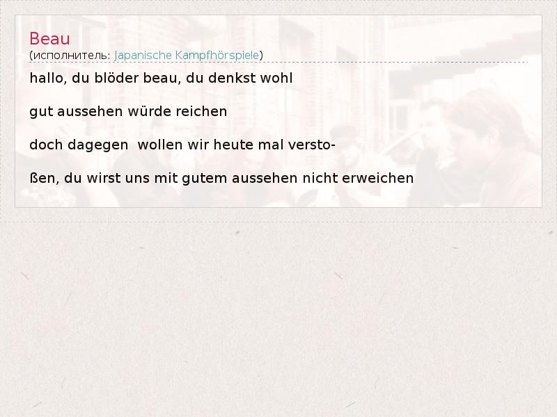 ßen, du wirst uns mit gutem aussehen nicht erweichen