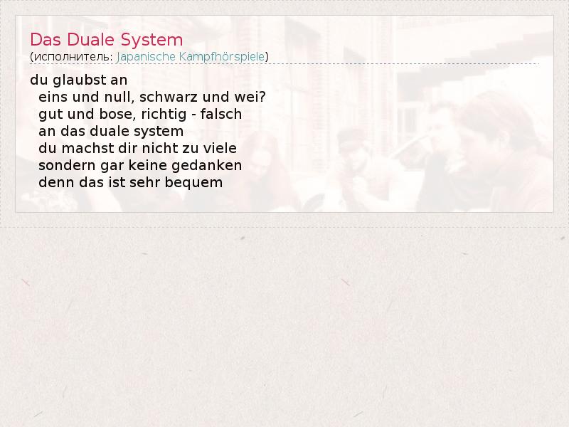 А как ты думаешь, о чем песня "Das Duale System" ?