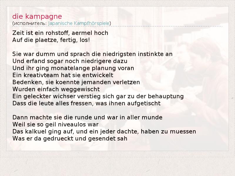 А как ты думаешь, о чем песня "die kampagne" ?