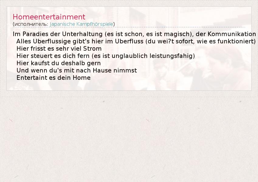 А как ты думаешь, о чем песня "Homeentertainment" ?