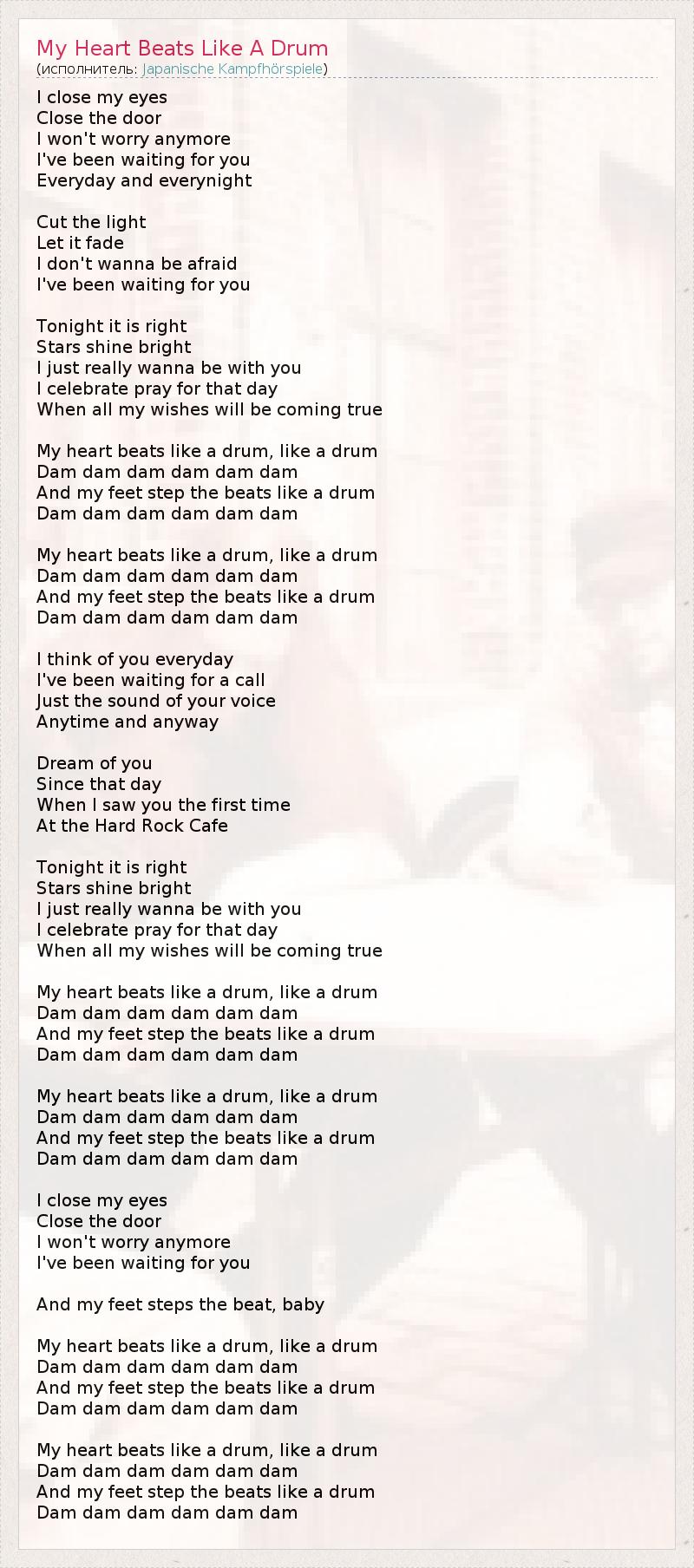 А как ты думаешь, о чем песня "My Heart Beats Like A Drum" ?