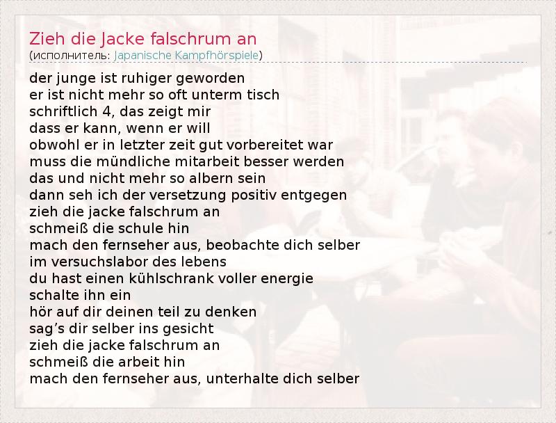 А как ты думаешь, о чем песня "Zieh die Jacke falschrum an" ?