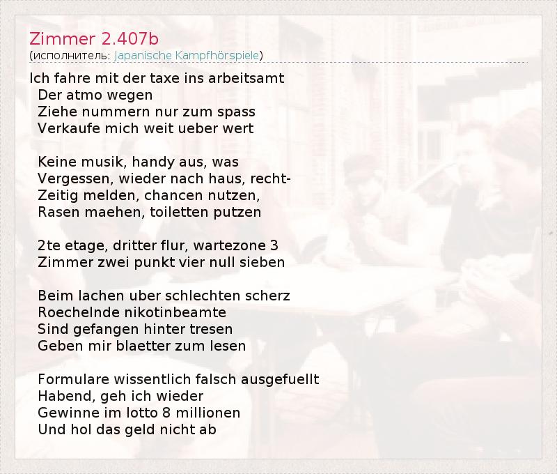 А как ты думаешь, о чем песня "Zimmer 2.407b" ?
