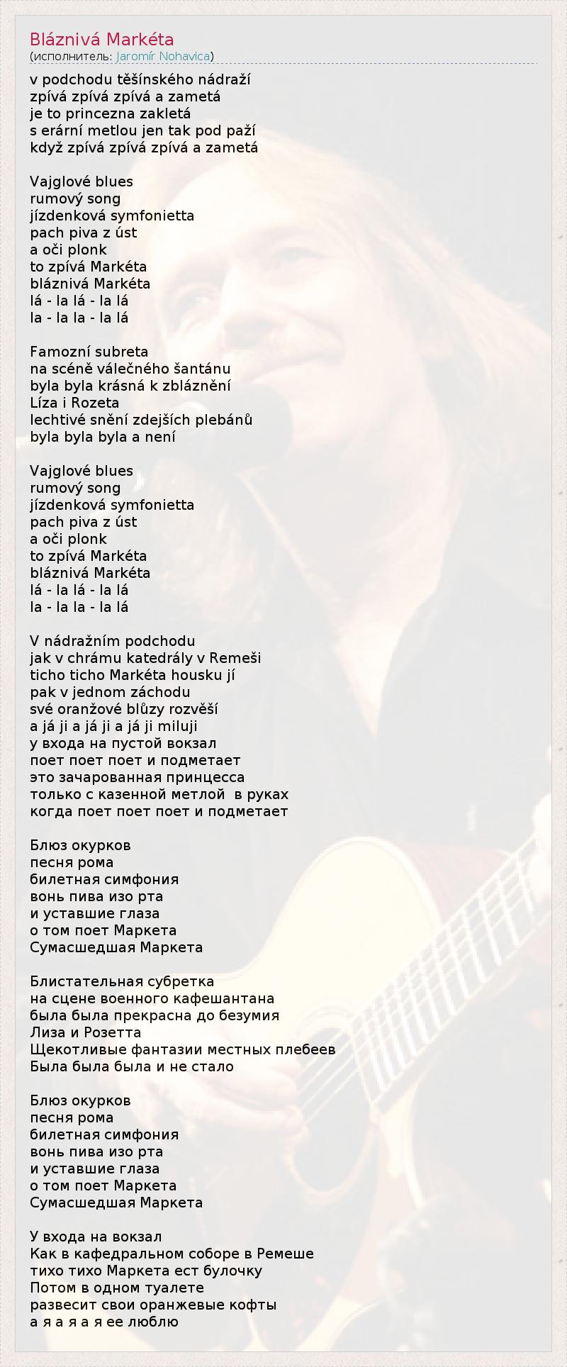 А как ты думаешь, о чем песня "Bláznivá Markéta" ?
