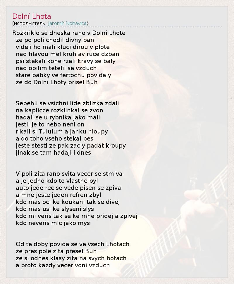 А как ты думаешь, о чем песня "Dolní Lhota" ?