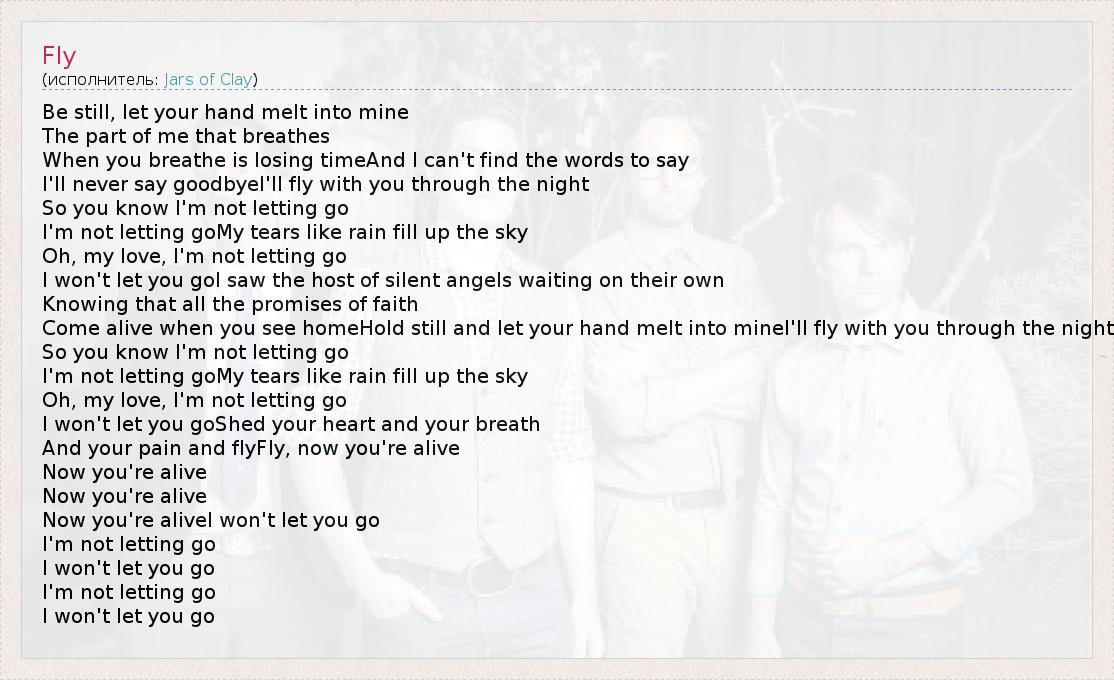Come alive when you see homeHold still and let your hand melt into mineI'll fly with you through the night
