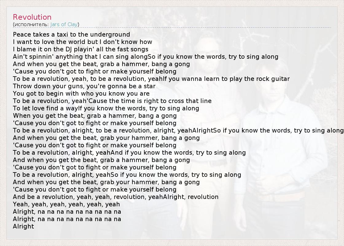 To be a revolution, alright, to be a revolution, alright, yeahAlrightSo if you know the words, try to sing along