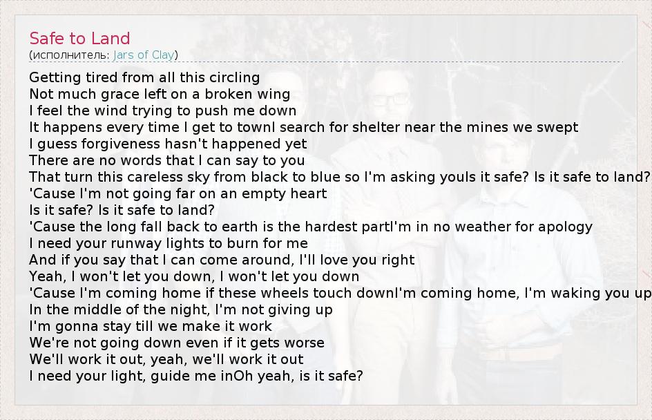 А как ты думаешь, о чем песня "Safe to Land" ?