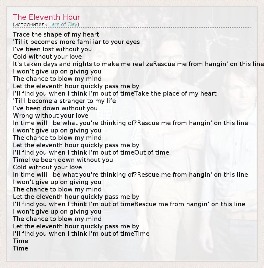 А как ты думаешь, о чем песня "The Eleventh Hour" ?