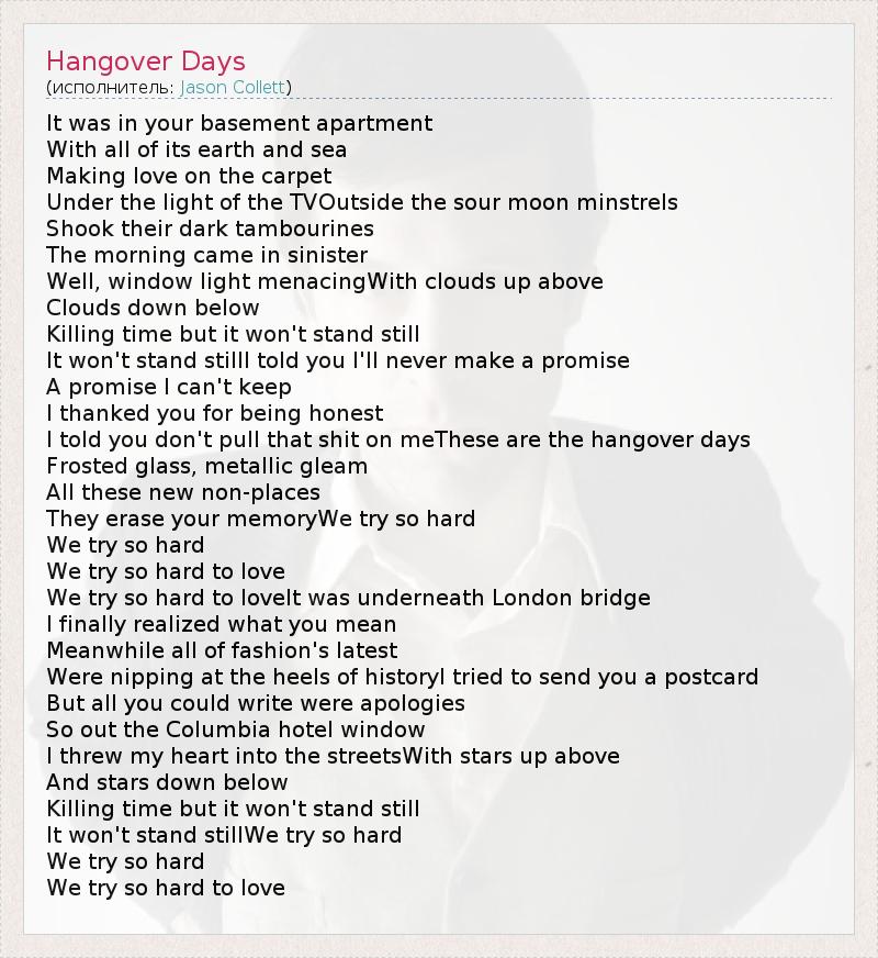 А как ты думаешь, о чем песня "Hangover Days" ?
