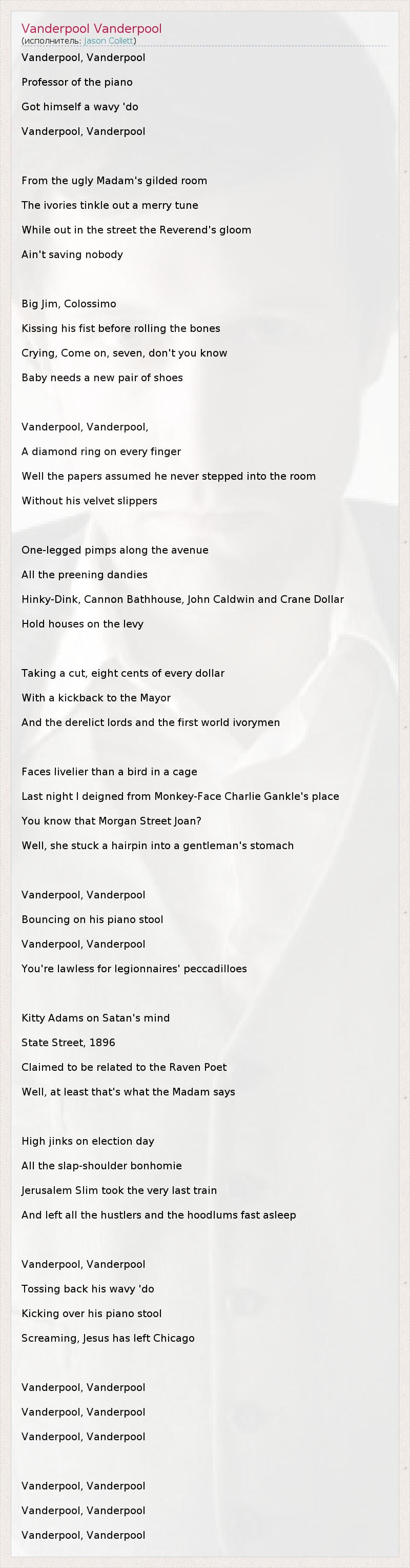 А как ты думаешь, о чем песня "Vanderpool Vanderpool" ?