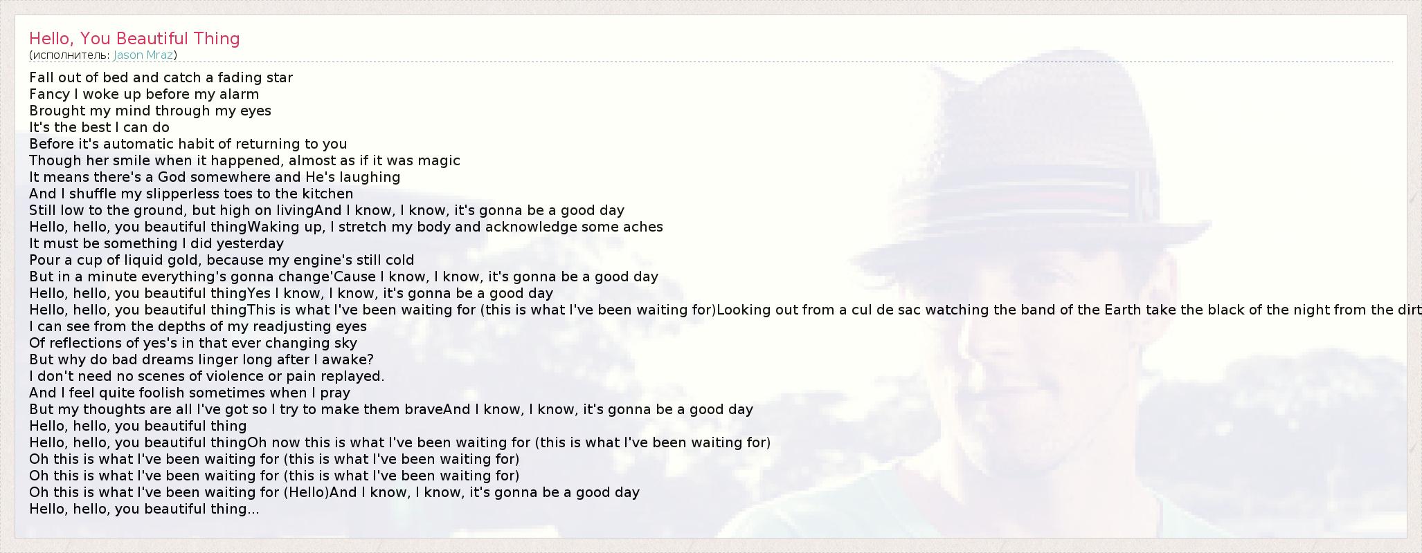 ГлавнаяИсполнителиJason MrazHello, You Beautiful Thing