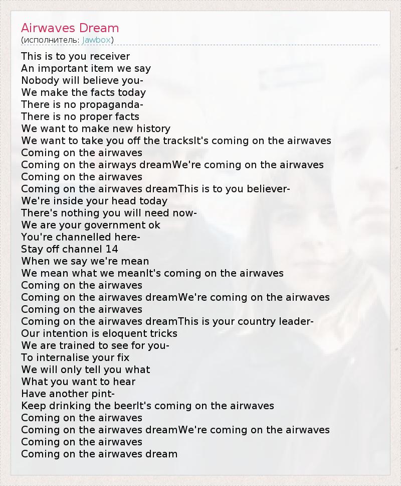 А как ты думаешь, о чем песня "Airwaves Dream" ?