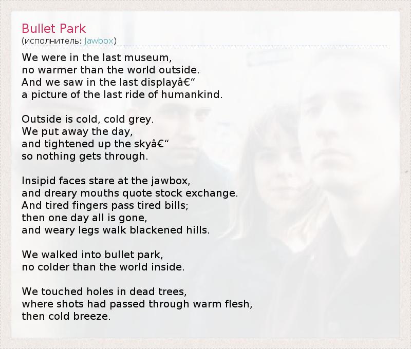 А как ты думаешь, о чем песня "Bullet Park" ?