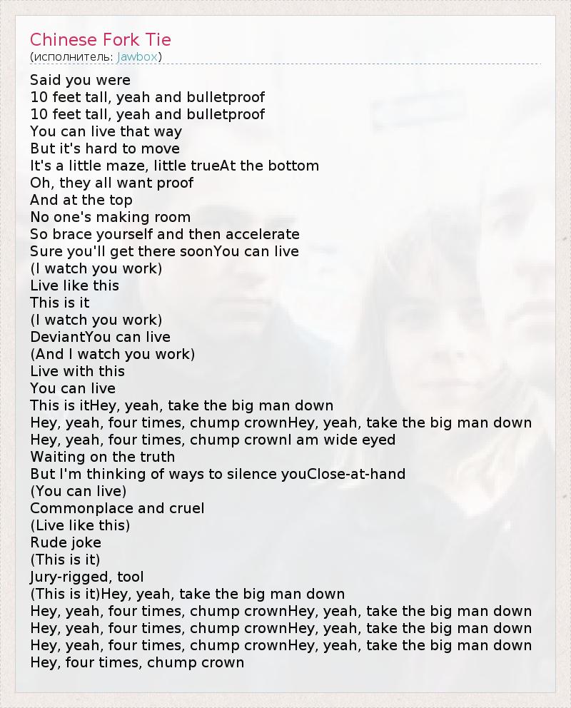А как ты думаешь, о чем песня "Chinese Fork Tie" ?