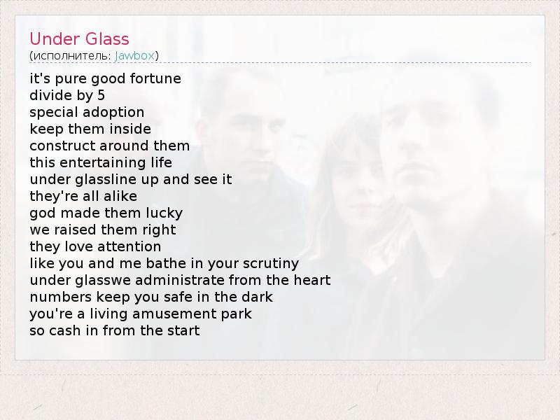 А как ты думаешь, о чем песня "Under Glass" ?