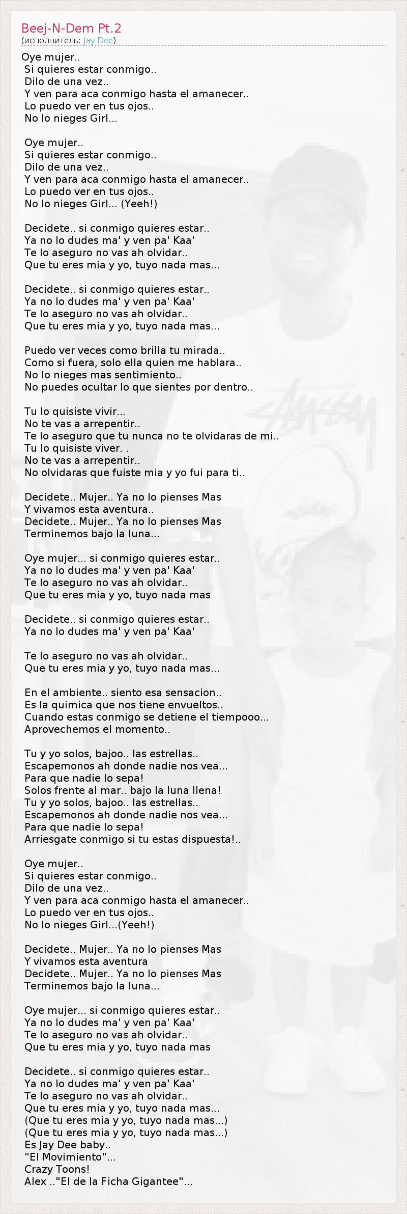 А как ты думаешь, о чем песня "Beej-N-Dem Pt.2" ?
