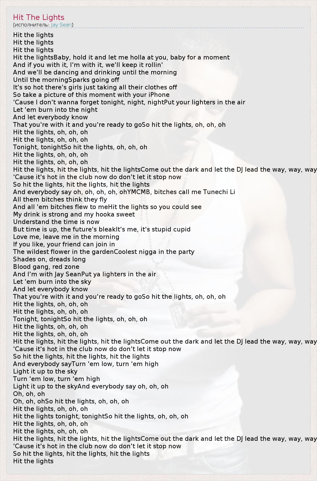 Hit the lights, hit the lights, hit the lightsCome out the dark and let the DJ lead the way, way, way