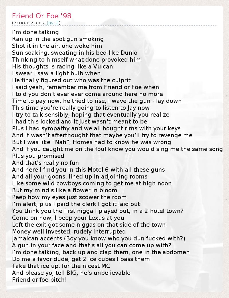 А как ты думаешь, о чем песня "Friend Or Foe '98" ?