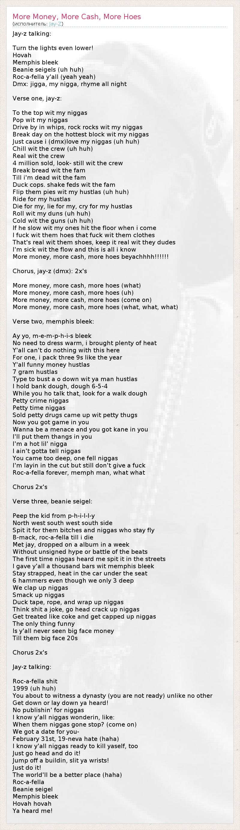 ГлавнаяИсполнителиJay-ZMore Money, More Cash, More Hoes