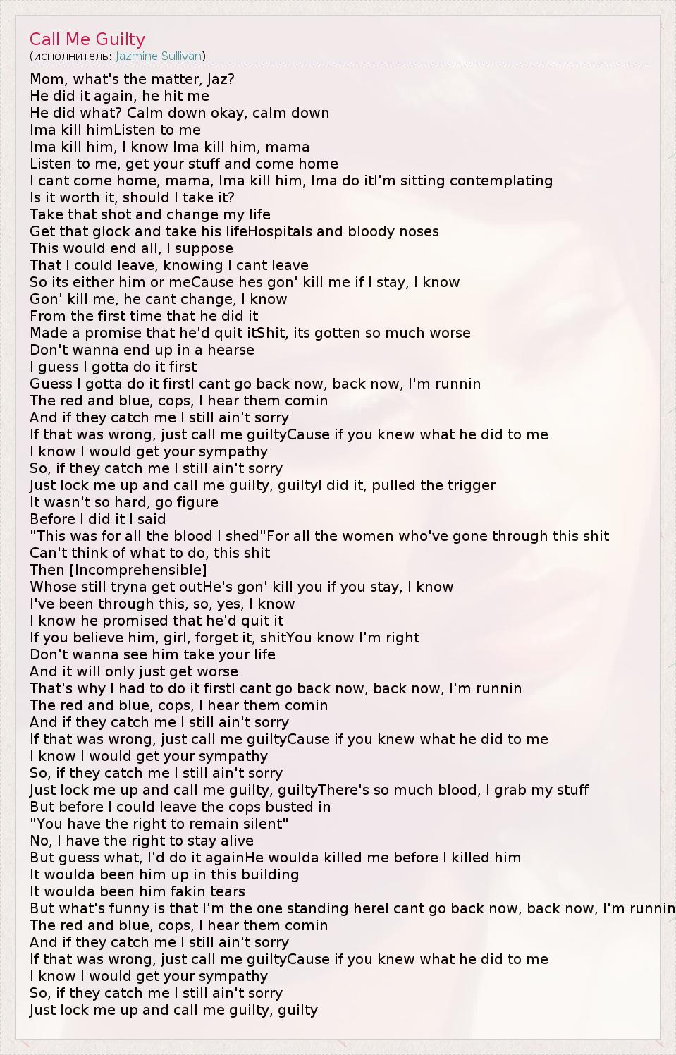 If that was wrong, just call me guiltyCause if you knew what he did to me