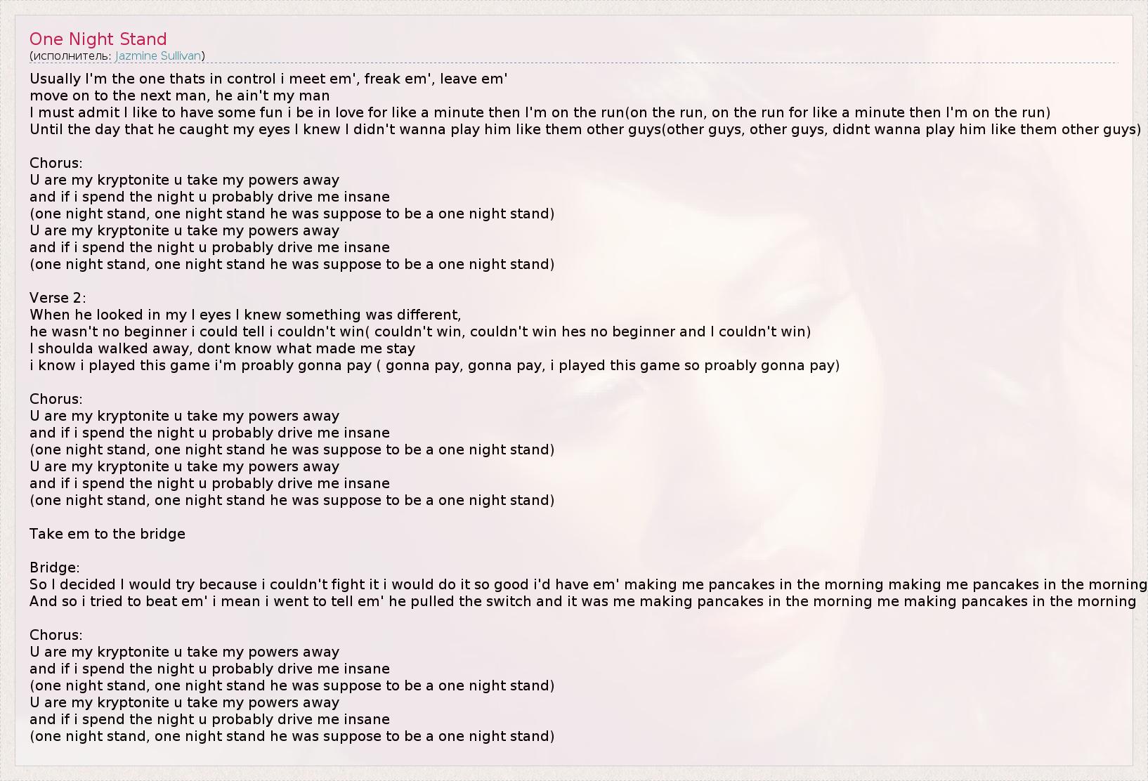 (one night stand, one night stand he was suppose to be a one night stand)
