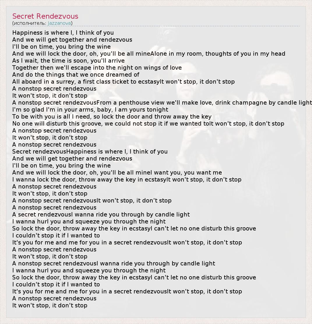 А как ты думаешь, о чем песня "Secret Rendezvous" ?