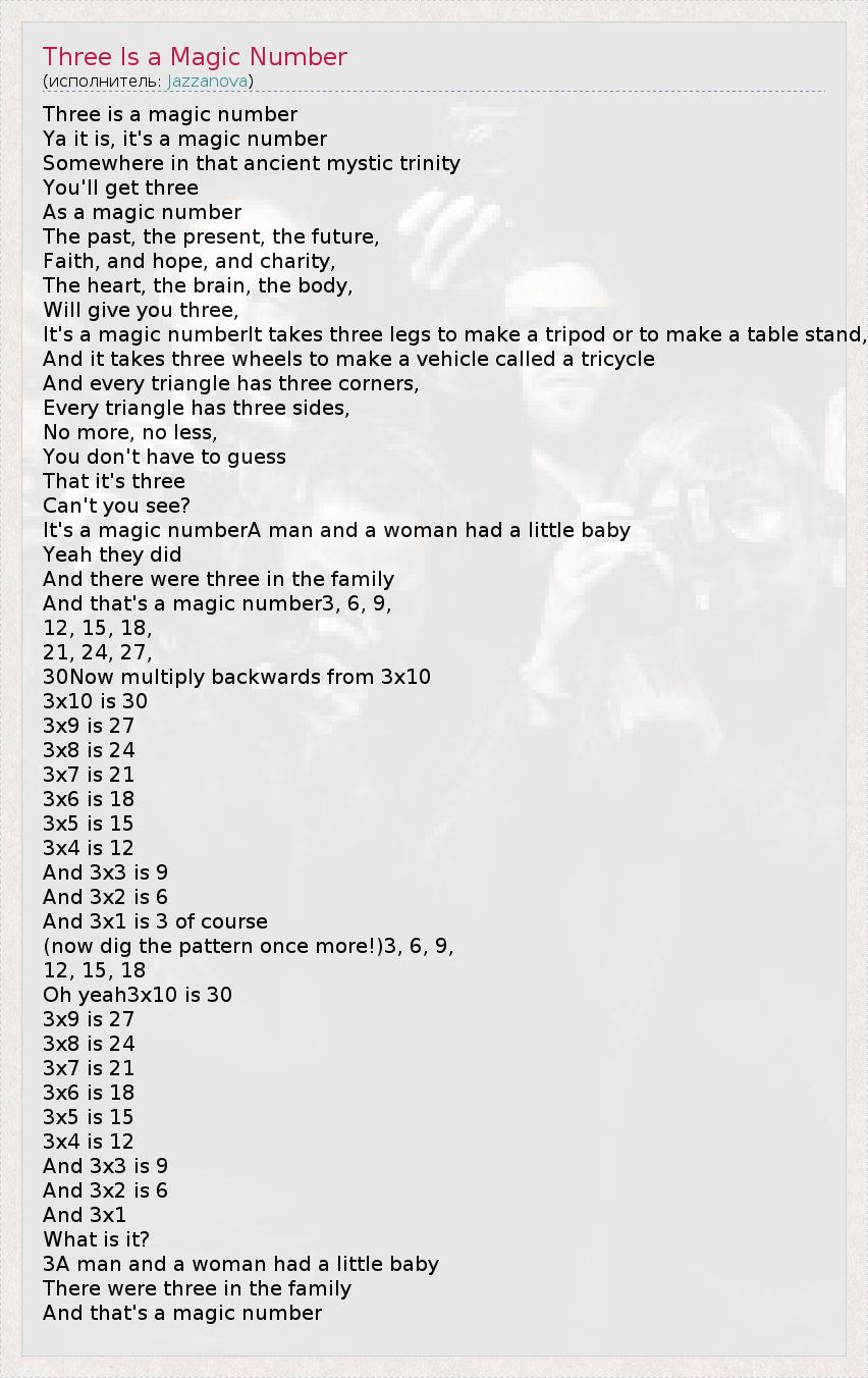 А как ты думаешь, о чем песня "Three Is a Magic Number" ?