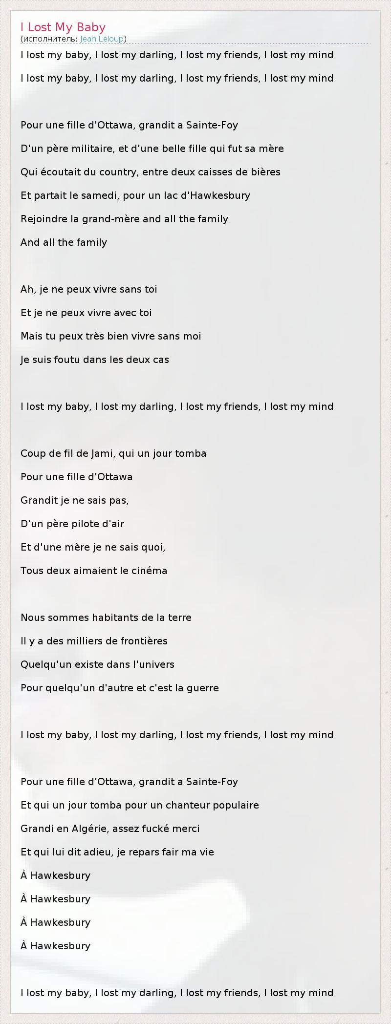 А как ты думаешь, о чем песня "I Lost My Baby" ?