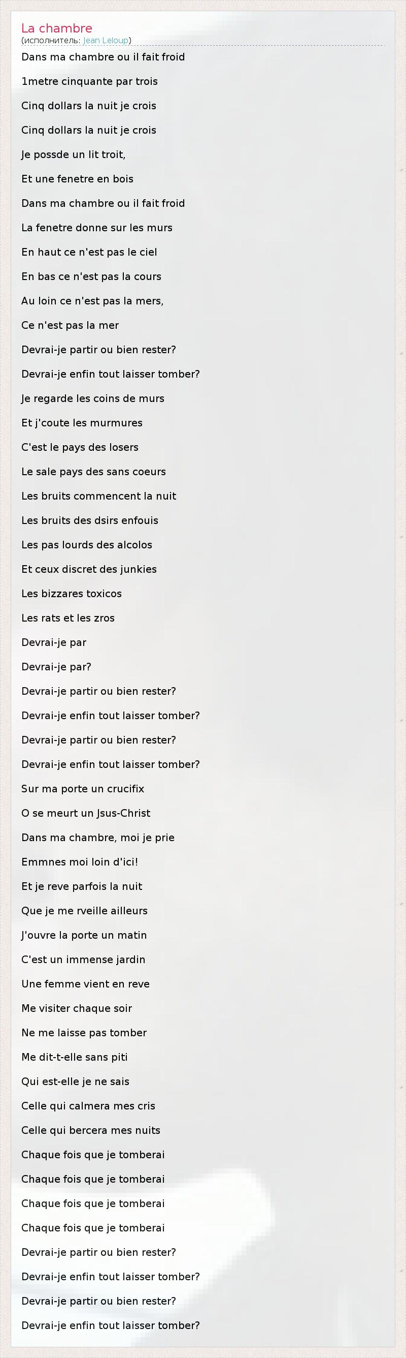 А как ты думаешь, о чем песня "La chambre" ?