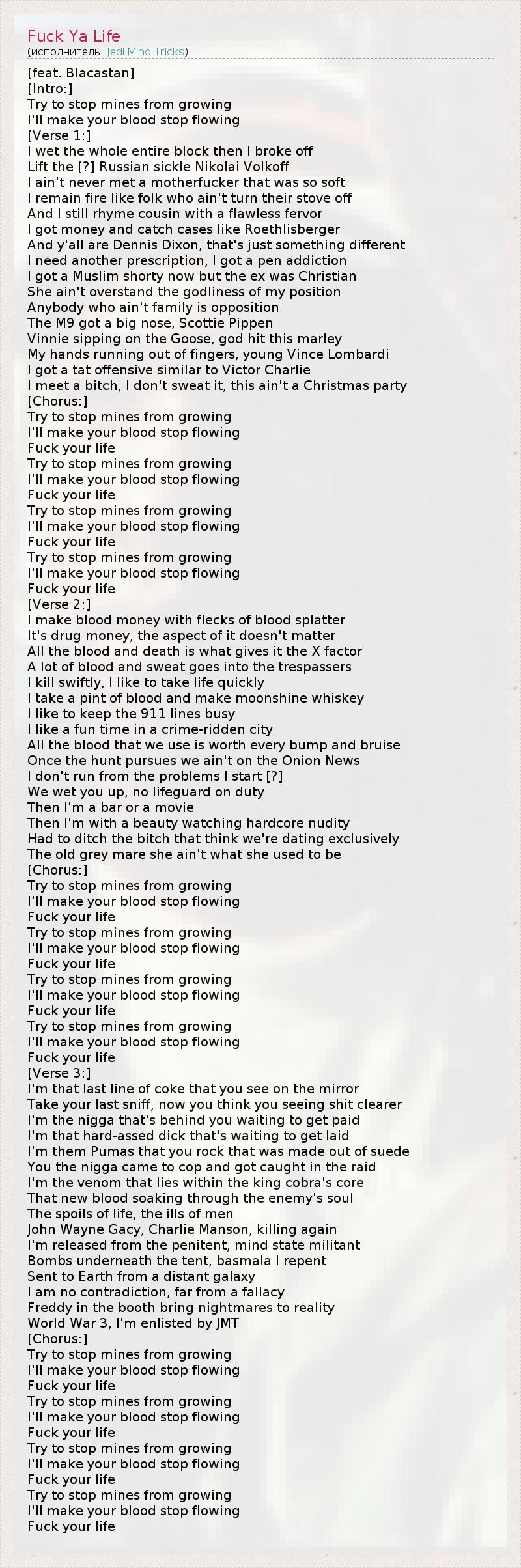 А как ты думаешь, о чем песня "Fuck Ya Life" ?