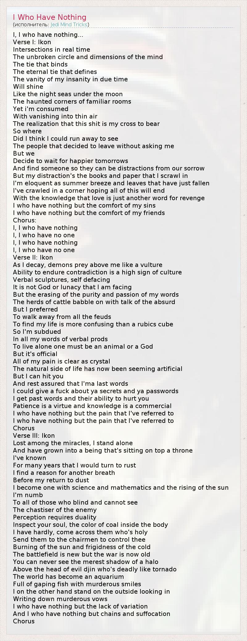 А как ты думаешь, о чем песня "I Who Have Nothing" ?