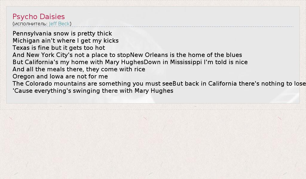 А как ты думаешь, о чем песня "Psycho Daisies" ?