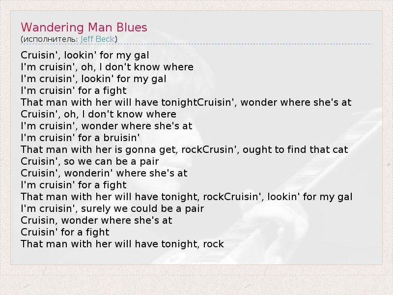 А как ты думаешь, о чем песня "Wandering Man Blues" ?