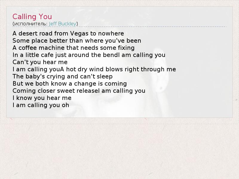А как ты думаешь, о чем песня "Calling You" ?