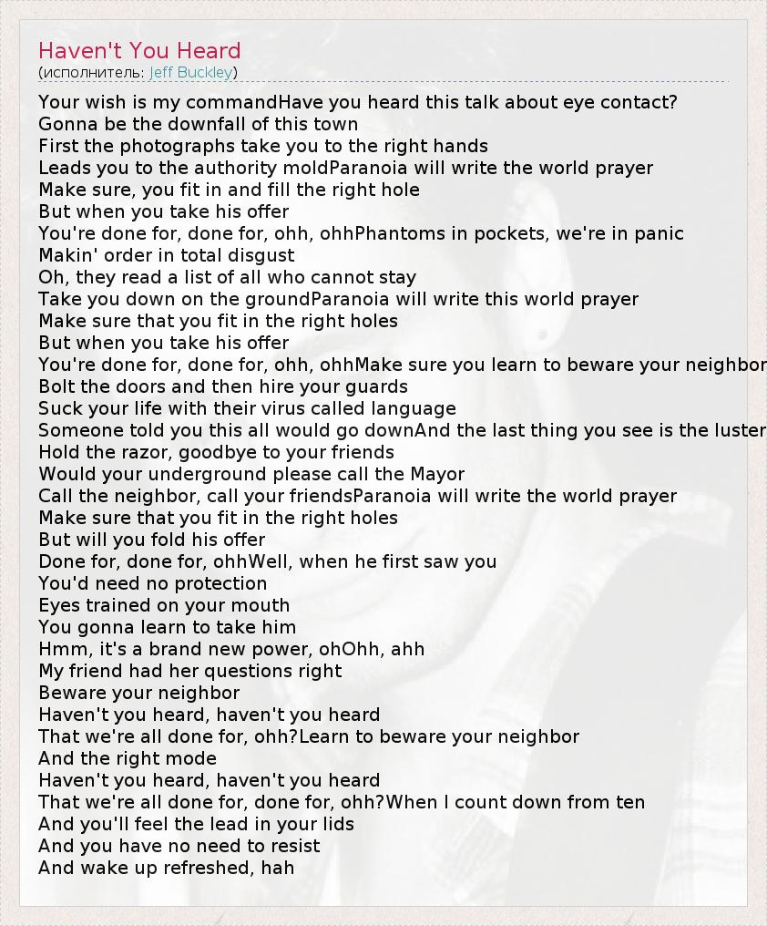 А как ты думаешь, о чем песня "Haven't You Heard" ?
