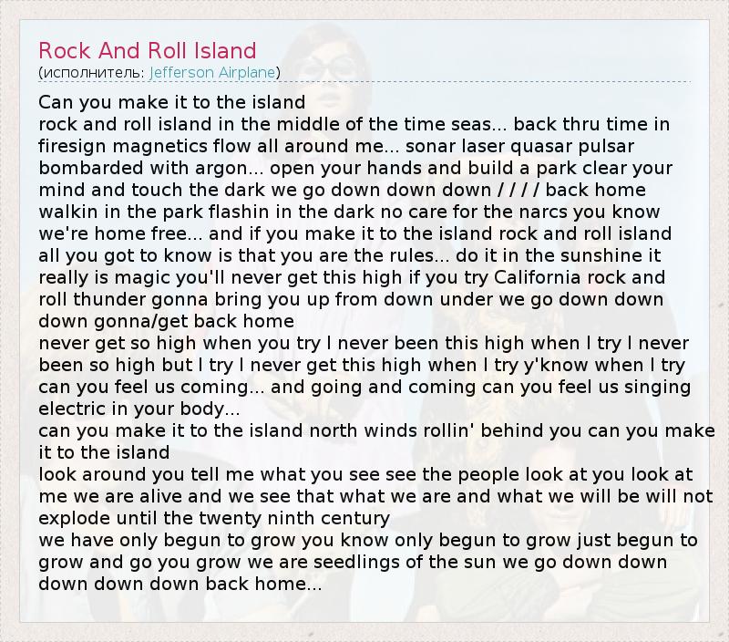 А как ты думаешь, о чем песня "Rock And Roll Island" ?