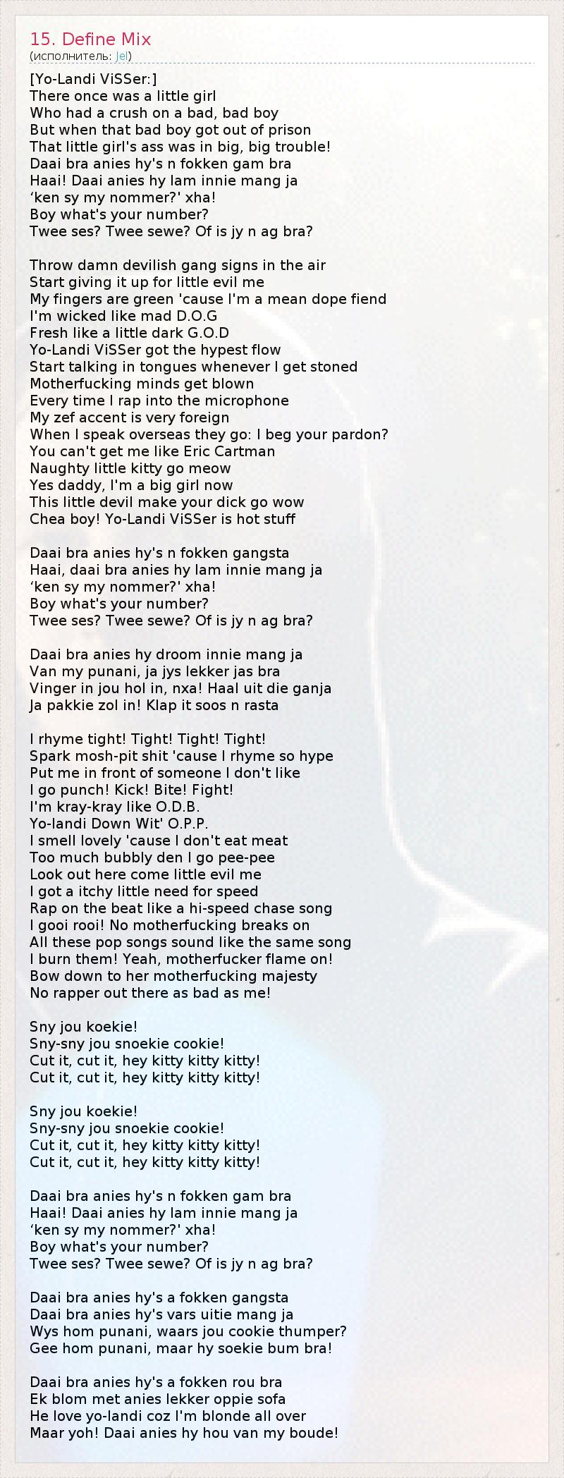 А как ты думаешь, о чем песня "15. Define Mix" ?